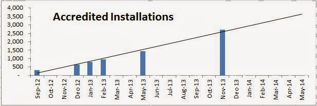 This was the first serious 'degression test' for the commercial RHI. DECC's figures show that both the small and medium commercial biomass tariffs had exceeded their degression trigger points: