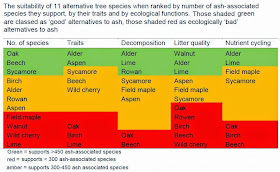 When woodland managers are considering which alternative tree/shrub species to regenerate or plant in order to mitigate the impacts of ash-dieback on biodiversity, the number of ash-associated species supported is only one factor to consider.