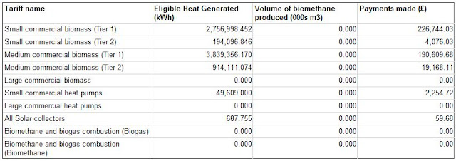 Before we get going we thought we would highlight the following tables that show the latest position on RHI uptake and payments (England only, see Ofgem web site for full report).